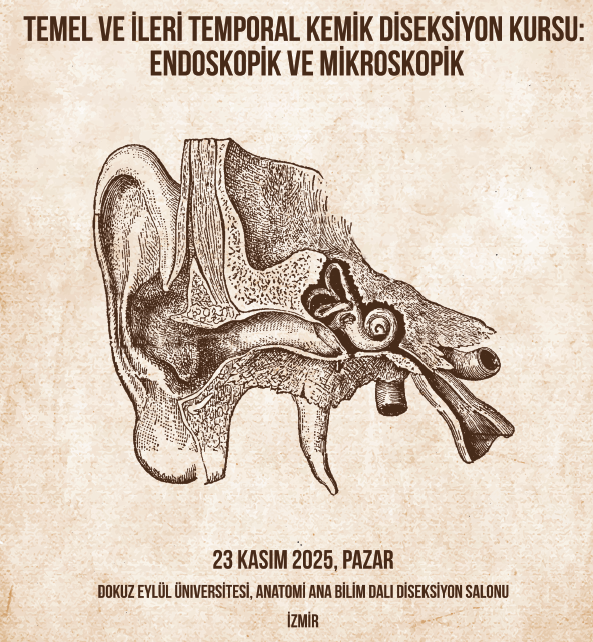 Temporal Kemik Diseksiyon Kursu 23 Kasım 2025, Pazar tarihinde Dokuz Eylül Üniversitesi, Anatomi Ana Bilim Dalı Diseksiyon Salonu'nda g..